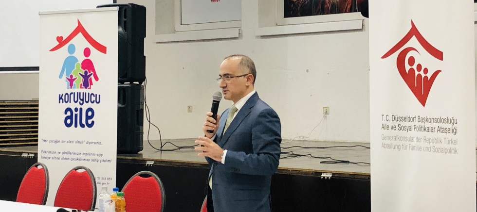 Aile ve Sosyal Politikalar Ataşesi Raci Mazı ise yaptığı konuşmada koruyucu aile olmanın önemine dikkat çekti. Yaşadığımız toplumda çocukların önemli bir risk altında olduğunu, dolayısıyla koruma altına alınan çocuk sayısının oldukça yüksek olduğuna dikkat çeken Mazı, her cemiyetin kendi bünyesinde mutlaka bir koruyucu aile gündemine sahip olması gerektiğini vurguladı. Aile Ataşeliğinin pedagoglarından Sabri Aydın Almanya’da koruyucu aile olmanın yollarını slaytlar eşliğinde anlattı. Aydın, koruyucu aile olmanın zor bir süreç olmadığını, aranan en önemli üç şartın, bağımsız bir maddi gelirin olması, evin yeteri derecede büyük olması ve ebeveynlerden birisinin Almanca bilmesi olduğunu vurguladı. Bu şartların bugün yerinde olmaması durumunda gelecekte bu şartların yerine gelebileceğini hatırlatan Aydın, koruyucu aile olmak isteyen aileleri sürecin başından sonuna kadar desteklediklerini ifade etti.